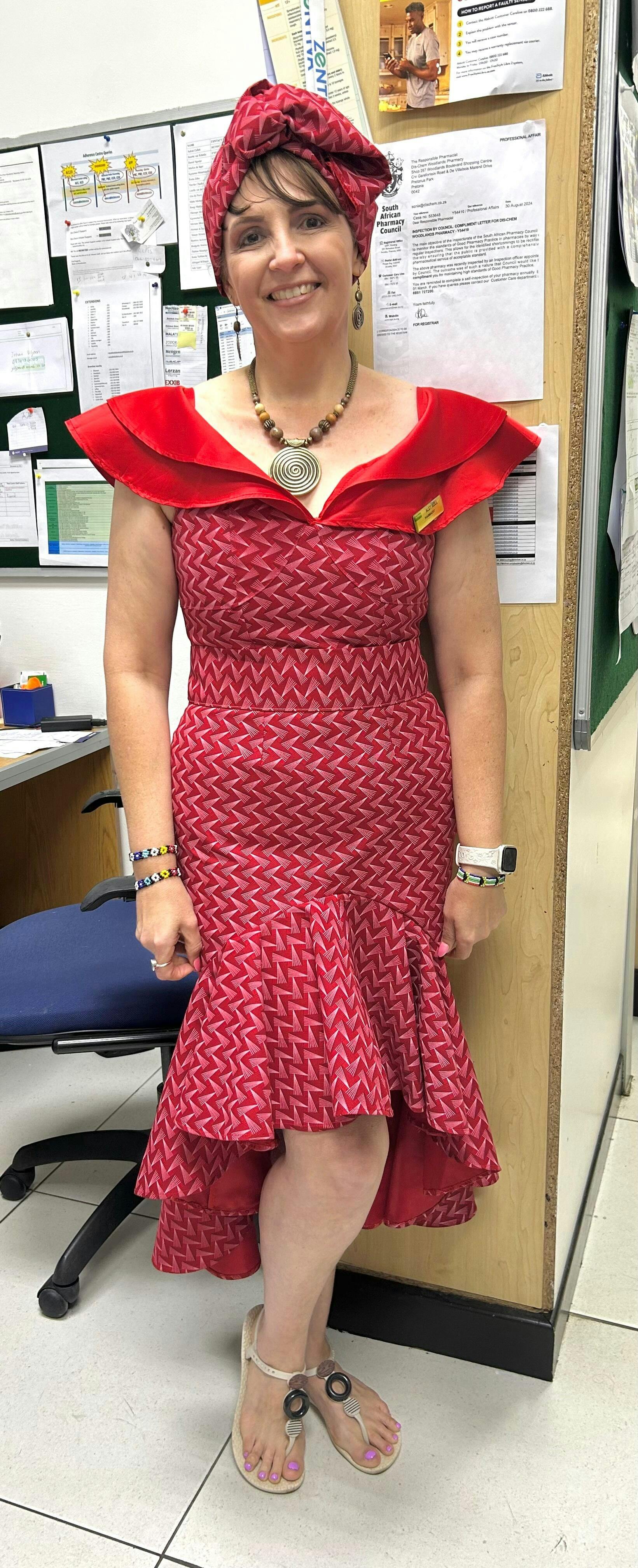 Ladies Shweshwe Traditional Dress With Doek~Red