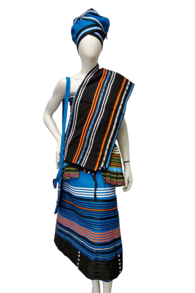 Ladies Traditional 5pc Wrap Skirt, Bag ,Doek And Ibhayi -Multicolored