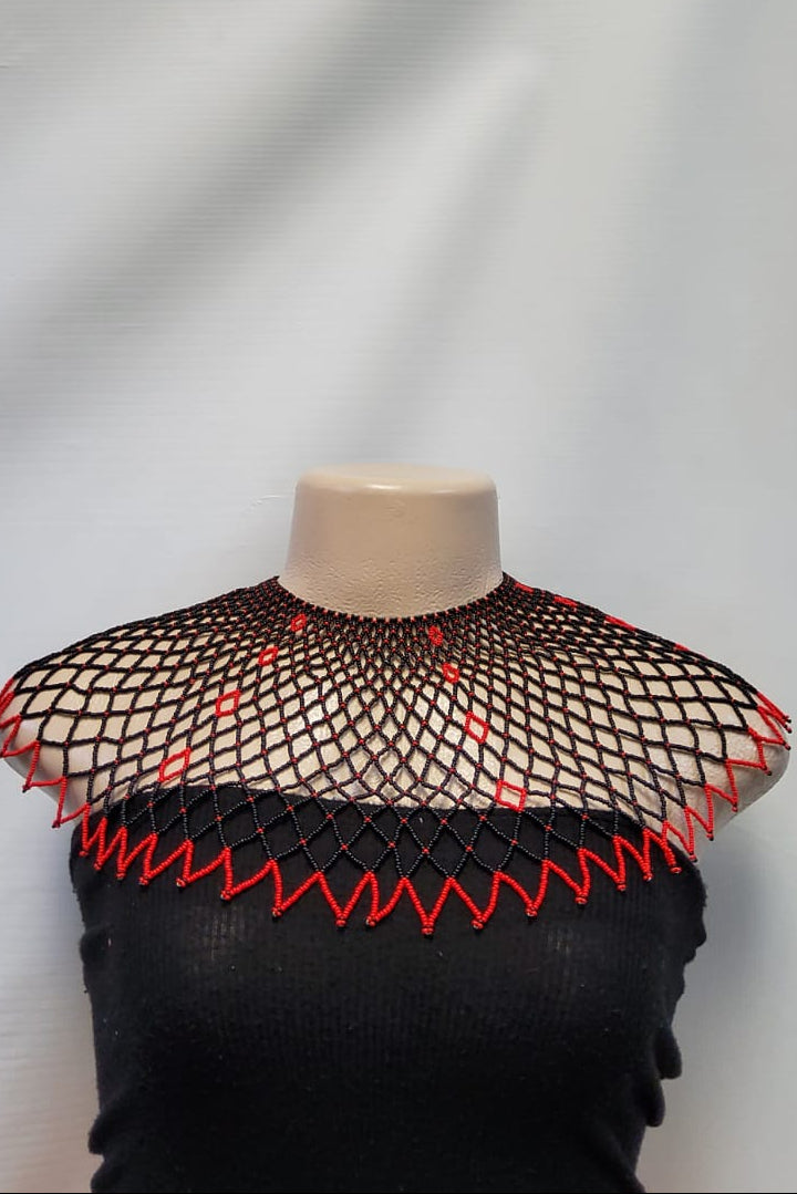 Traditional Beaded Neckless - Black /Red
